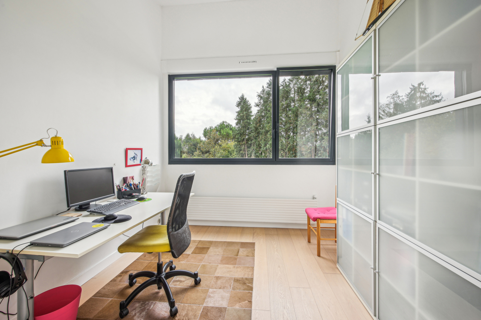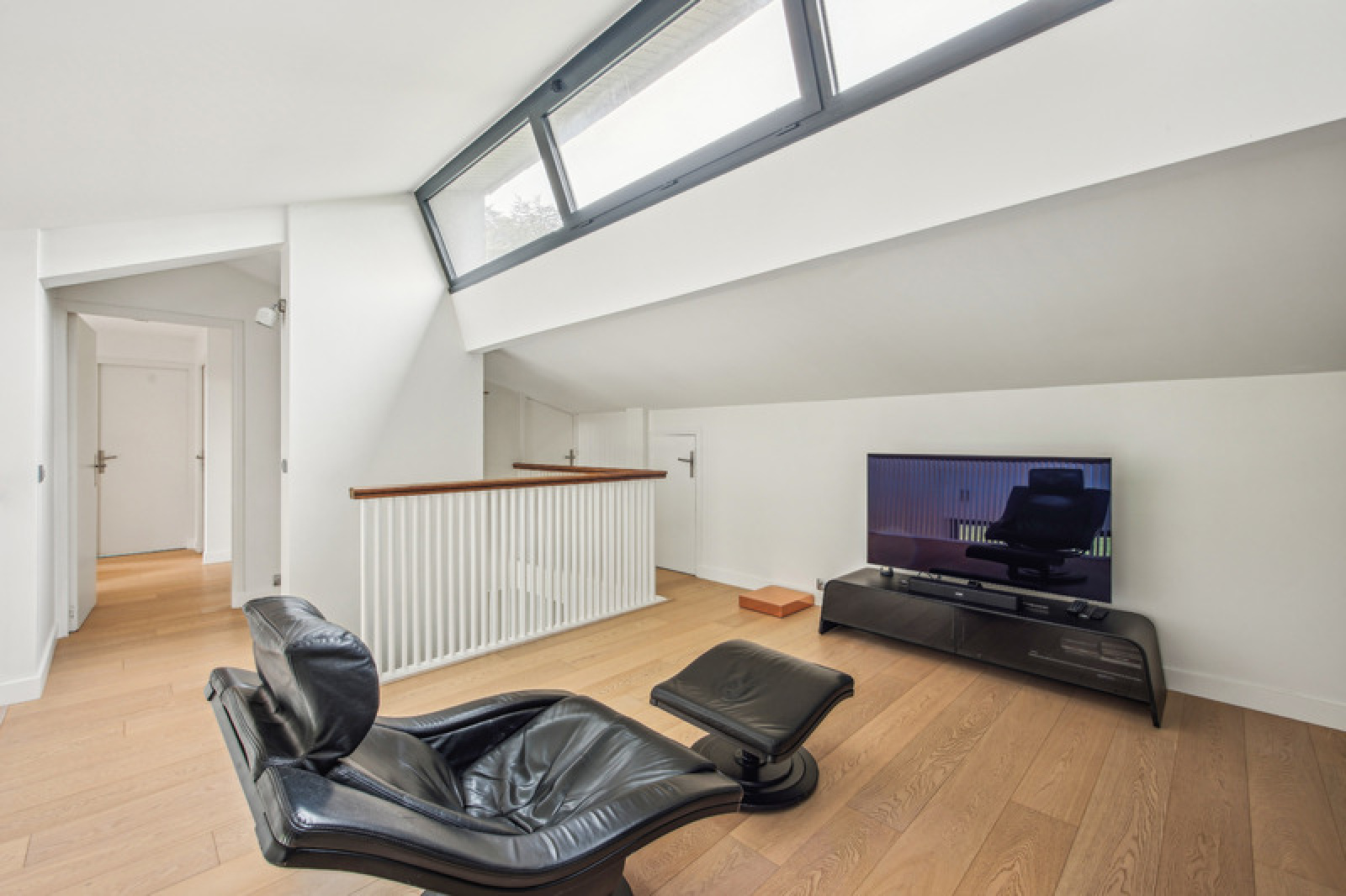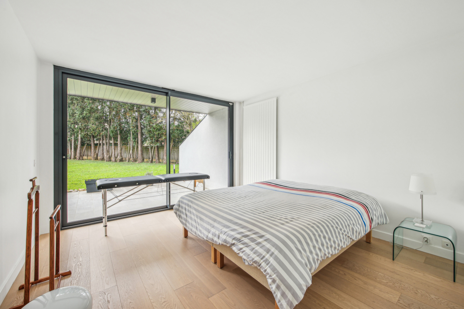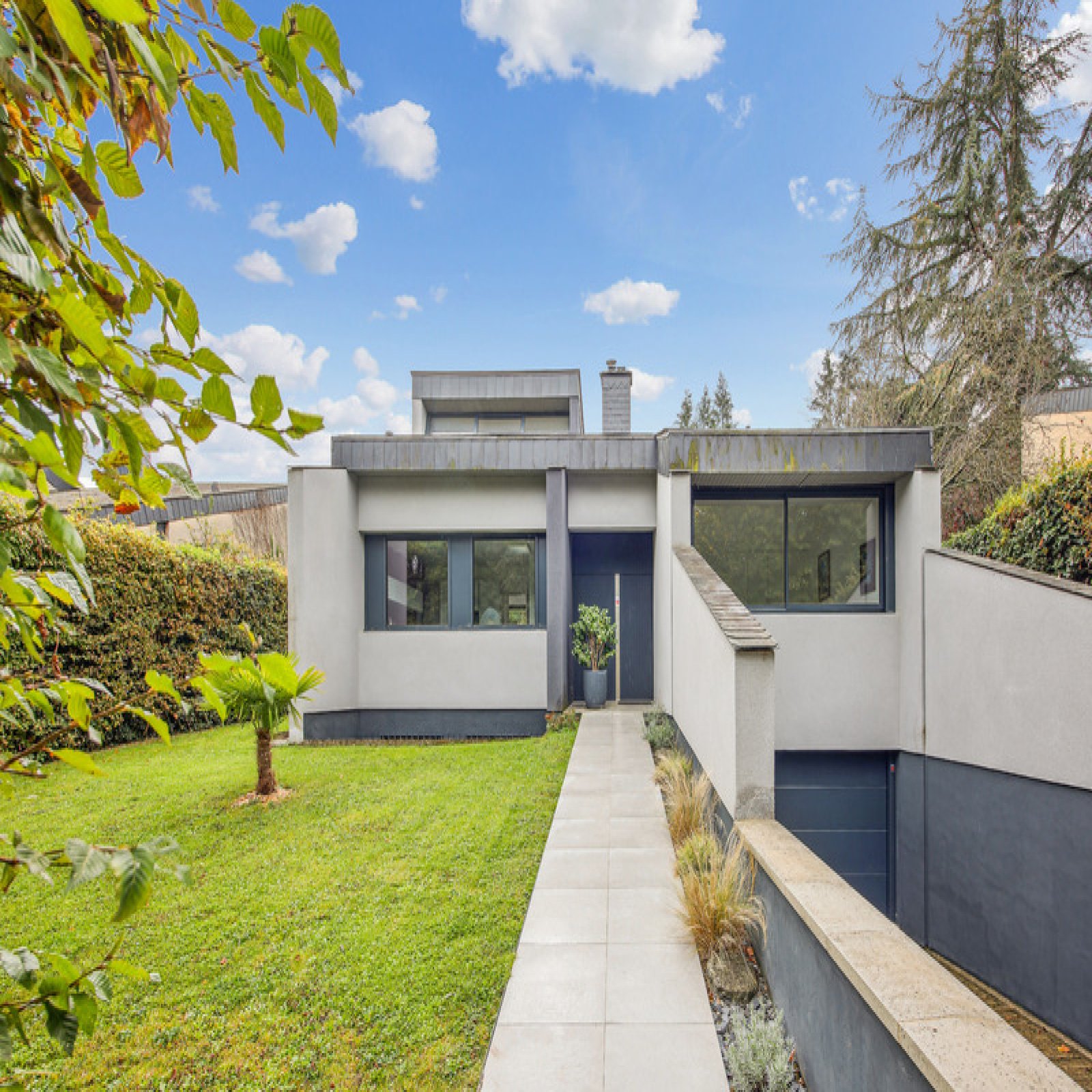 Dans le quartier recherché de la Chaîne, proche de la forêt et des commodités, magnifique maison d'architecte de 160 m2 habitables, avec sous-sol total, bâtie sur un terrain de 1127 m2.