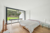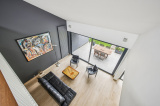 Un escalier en béton ciré dessert l'étage qui se compose d'une mezzanine avec espace de lecture, dégagement avec rangements, deux chambres, salle de douches et WC indépendants.
