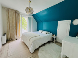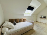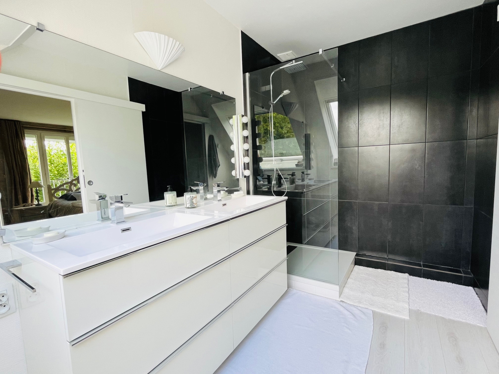 L'étage comprend trois belles chambres avec placards, une salle de bains avec wc et une suite parentale (34 m2) avec salle de douches, wc et dressing.