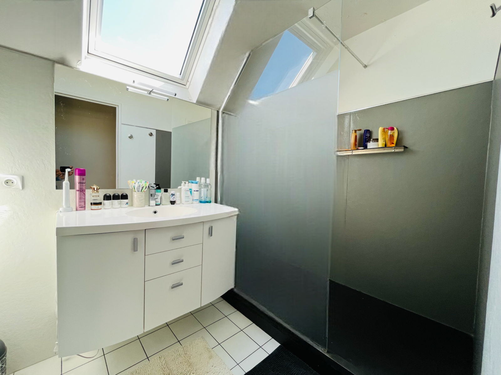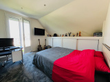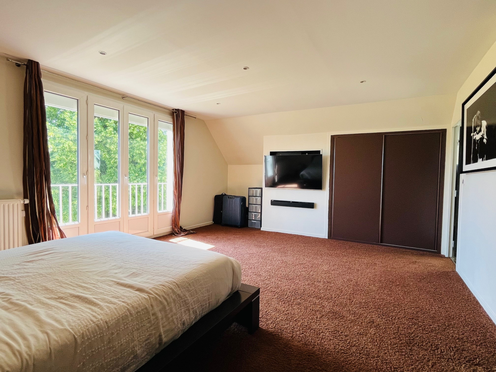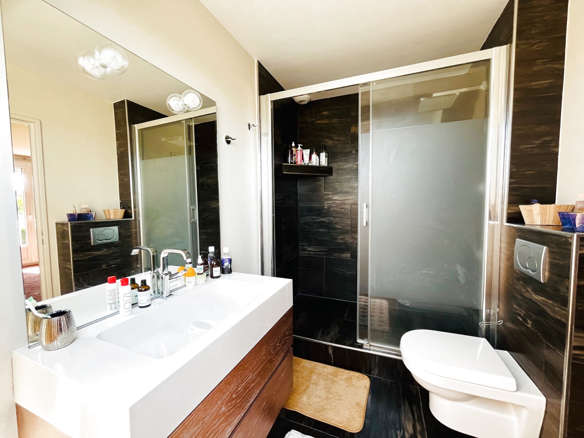 L'étage offre trois belles chambres, une salle de douches avec wc et une vaste suite parentale avec salle de douches, WC et dressing.